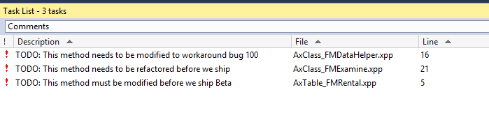 This section describes how you can create a Visual Studio project out of tasks (TODO comments) embedded in your X++ code.