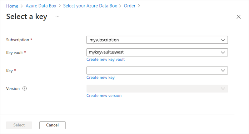 - For Key vault, you can select an existing key vault from the dropdown list.