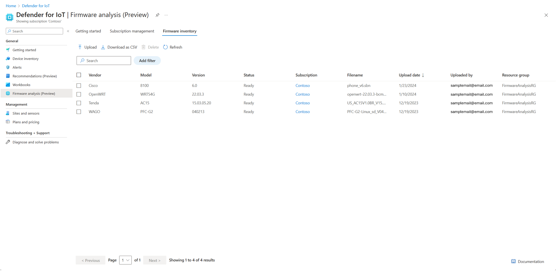 Microsoft Defender for IoT Firmware Analysis is now available in public preview. Defender for IoT can analyze your device firmware for common weaknesses and vulnerabilities, and provide insight into your firmware security. This analysis is useful whether you build the firmware in-house or receive firmware from your supply chain.