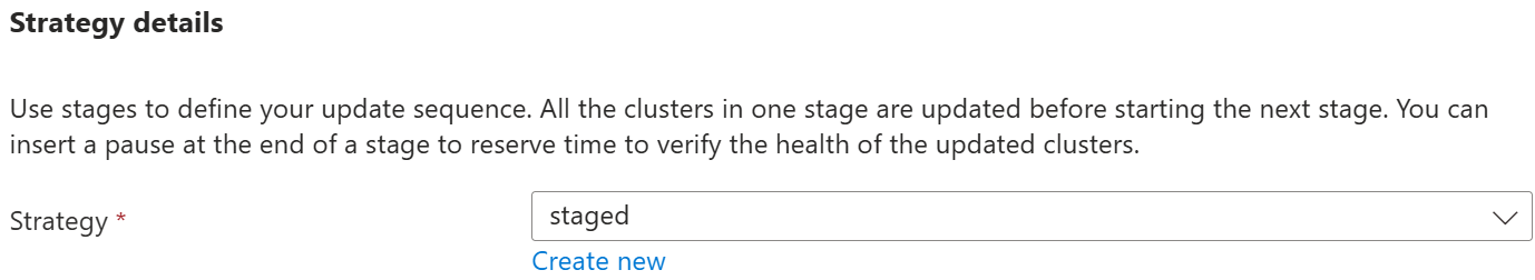 If you selected an update sequence using Stages, select or create a Strategy.