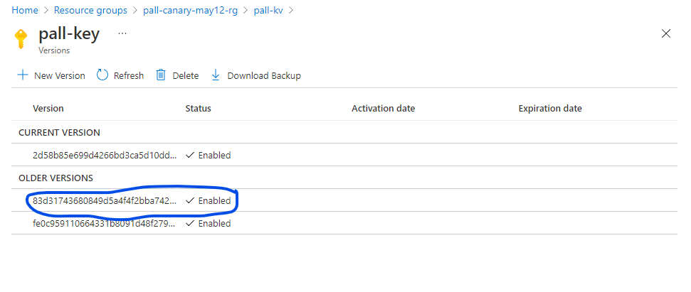 <key identifier>with the same key (the URI that you copied in the previous step) for both managed disk (managed-disk-customer-key-uri) and backup storage (backup-storage-customer-key-uri) encryption. Use the same value forsubnetthat you used earlier.managedDiskKeyUri = "<key identifier>" backupStorageKeyUri = "<key identifier>" group="thvankra-nova-cmk-test" region="westcentralus" cluster="thvankra-cmk-test-2" dc="dc1" nodecount=3 subnet="/subscriptions/<subscriptionID>/resourceGroups/<resourceGroupName>/providers/Microsoft.Network/virtualNetworks/<vnetName>/subnets/<subnetName>" az managed-cassandra datacenter create \ --resource-group $group \ --cluster-name $cluster \ --data-center-name $dc \ --managed-disk-customer-key-uri $managedDiskKeyUri \ --backup-storage-customer-key-uri $backupStorageKeyUri \ --node-count $nodecount \ --delegated-subnet-id $subnet \ --data-center-location $region \ --sku Standard_DS14_v2