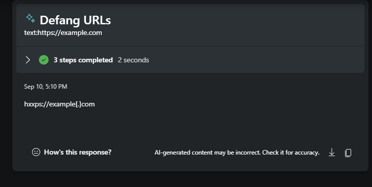 In this example, you're guided in creating a GPT tool (skill) for your agent that defangs a URL.