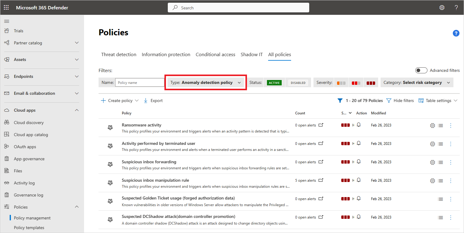 If you previously configured governance actions or email notifications for this policy, you can re-enable it at any time in the Microsoft Defender portal > Cloud Apps > Policy management page.
