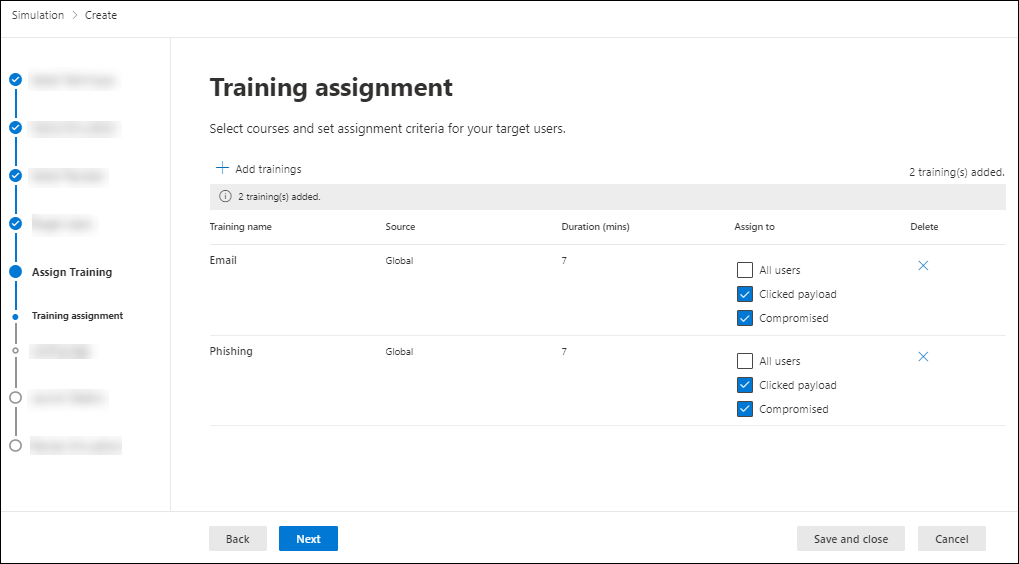 To assign training to users without putting them through a simulation, see Training campaigns in Attack simulation training.