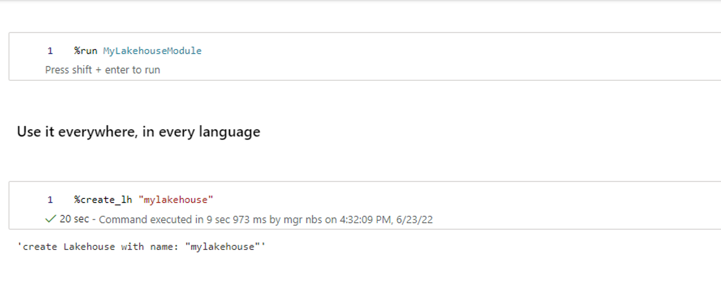 Fabric notebooks provide code snippets that help you easily write commonly used code patterns, like: