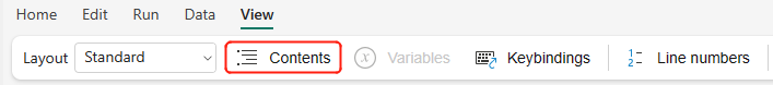 Selecting Outlines or Table of Contents presents the first markdown header of any markdown cell in a sidebar window for quick navigation. The Outlines sidebar is resizable and collapsible to fit the screen in the best way possible. Select the Contents button on the notebook command bar to open or hide the sidebar.