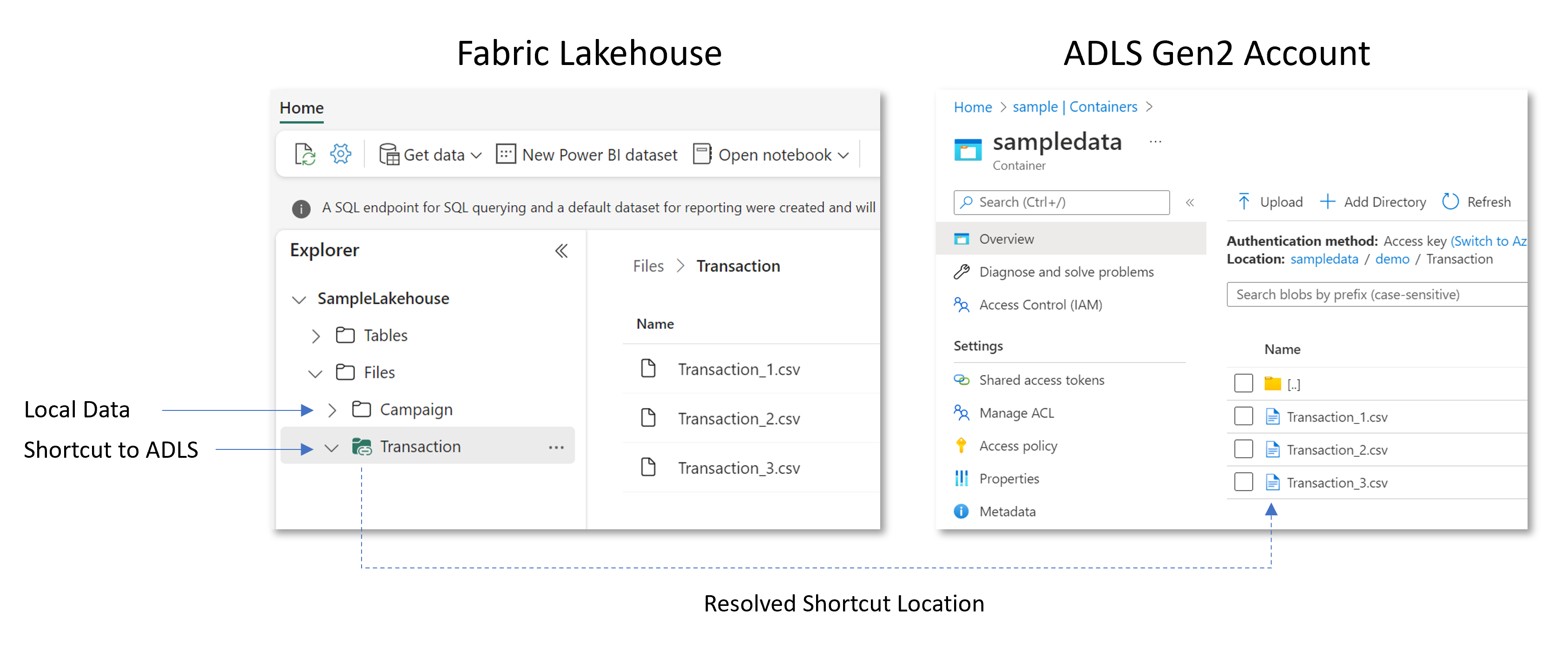 - Azure Data Lake Storage (ADLS) Gen 2 shortcuts