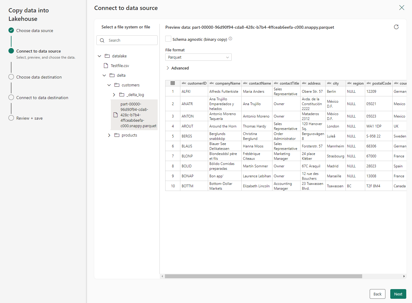 Select the file that you need to copy into the lakehouse.