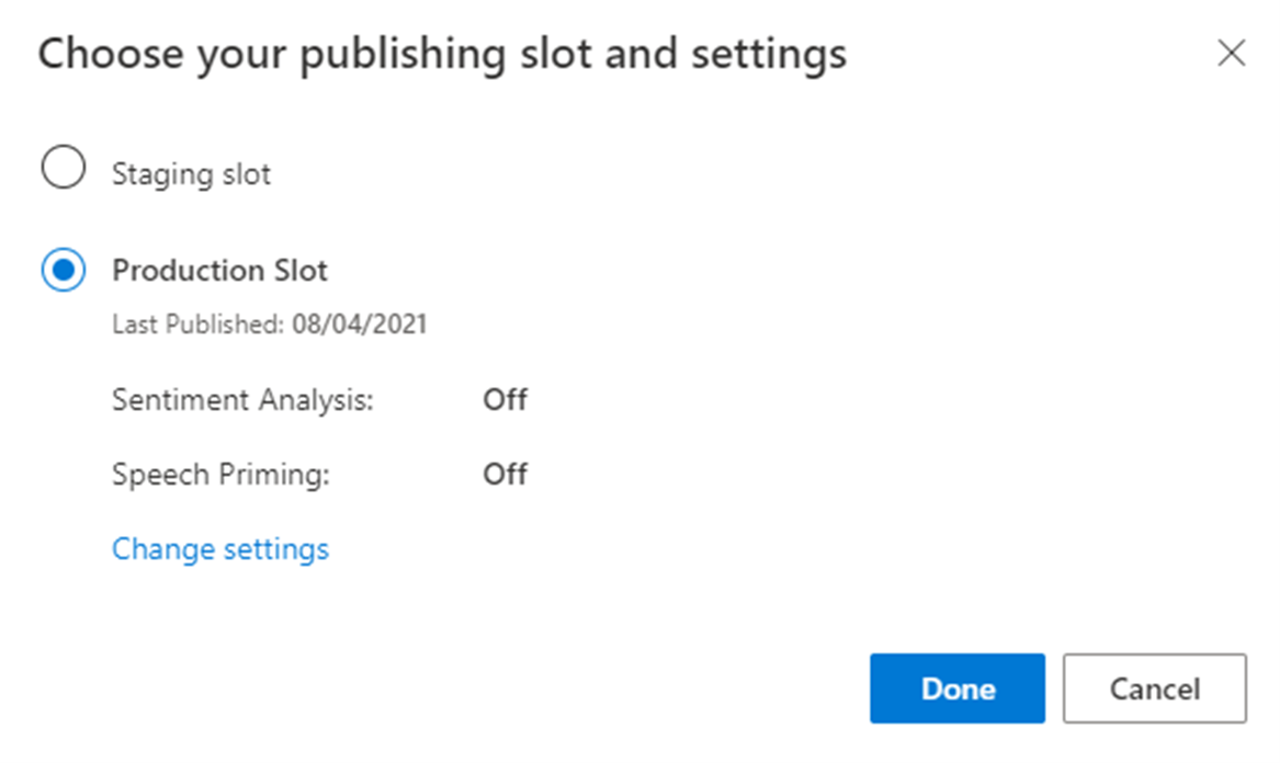 Select the Production slot, then select Done.