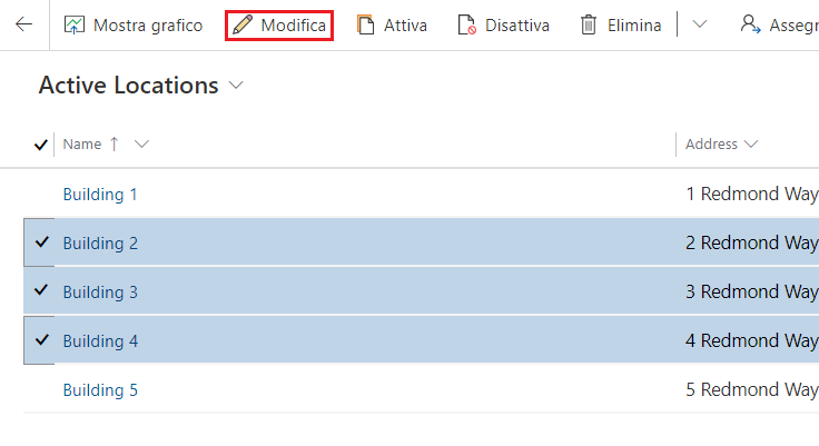 Selezionare Ubicazioni, scegliere tre ubicazioni, quindi selezionare Modifica.