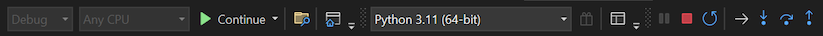 The Debugger toolbar along the top of the Visual Studio window provides quick access to the most common debugging commands: