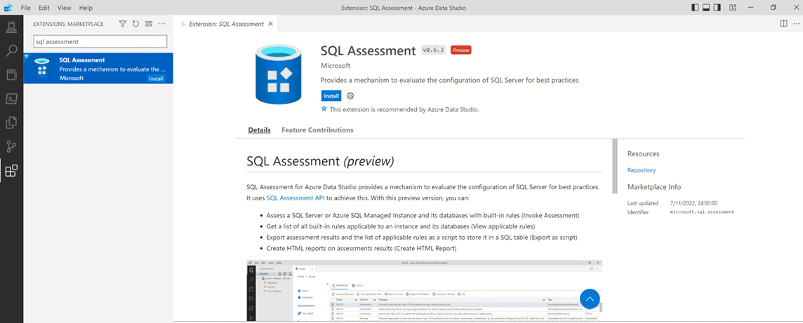 Azure Data Studio の SQL Assessment 拡張機能 (プレビュー) には、ベスト プラクティスのために SQL Server の構成を評価するメカニズムが用意されています。